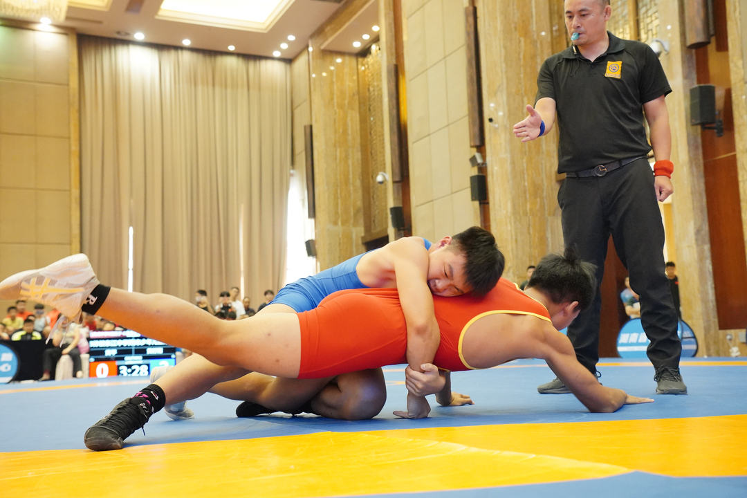 本次赛事为期3天,比赛分摔跤、柔道两个大项进行。赛场上,参赛选手们捉对“贴身肉搏”,各显其能,全力以赴,尽展狭路相逢勇者胜的精神。