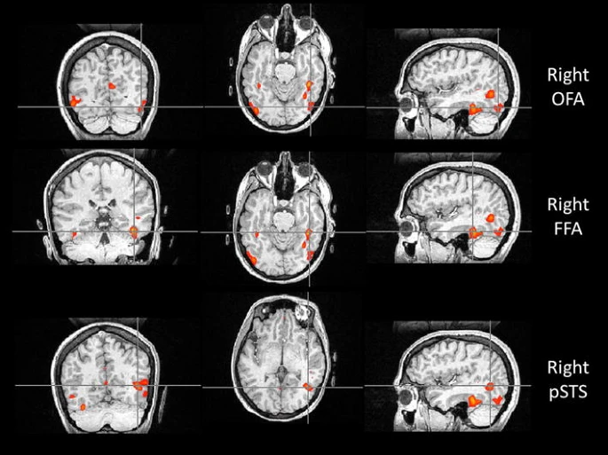 二十多年前,麻省理工学院的神经科学家 Nancy Kanwisher 发现,大脑颞叶中的梭状回面孔区(fusiform face area,FFA) 对人脸的反应远强于其他物体,是识别面孔的核心区域。