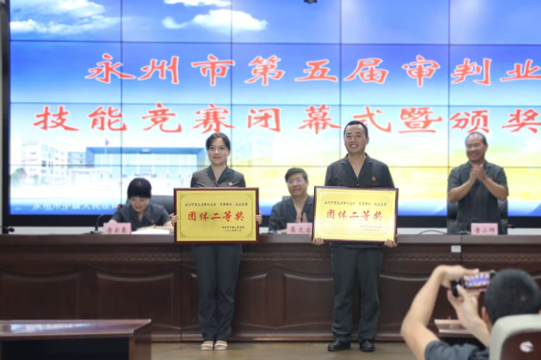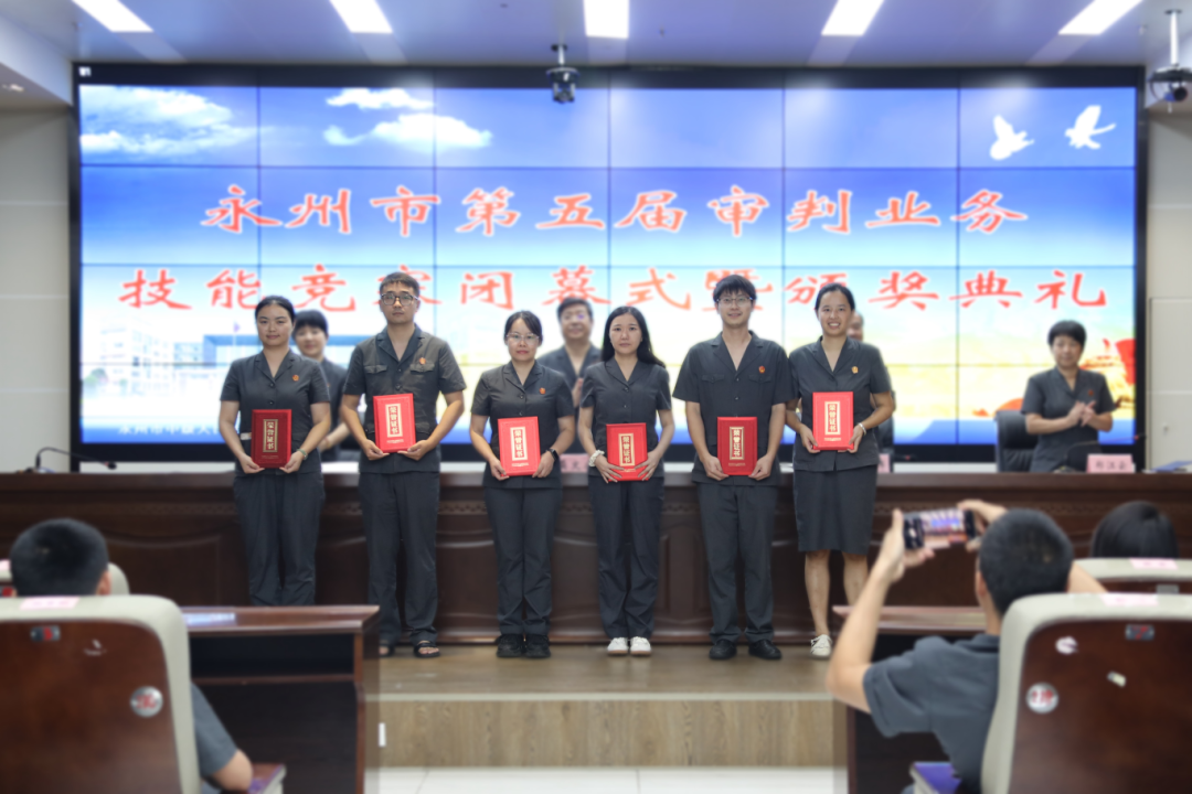 永州中院党组书记、院长龚文启出席颁奖仪式并作总结讲话。他指出,要持续强化学习,不断提升综合素养,让学习成为内化于心的习惯;要注重成果转化,切实服务审判实践,让竞赛经验成为外化于行的成效;要发扬竞赛精神,营造比学赶超氛围,让争先创优成为永州法院的风尚。并勉励大家要把此次竞赛作为前进路上的助推器,以更加饱满的热情、更加过硬的本领、更加昂扬的斗志,投入到今后的工作中去,为推动全市法院审判工作高质量发展做出新的更大的贡献。
