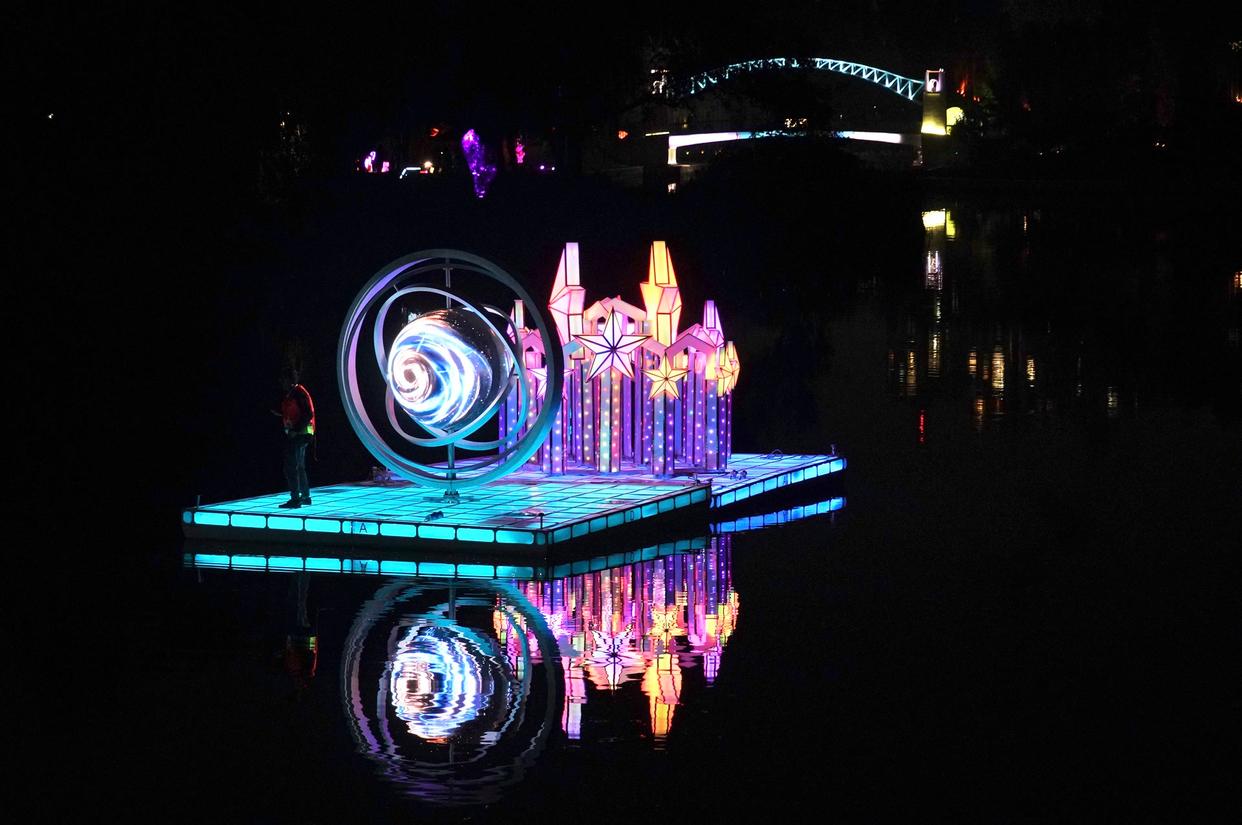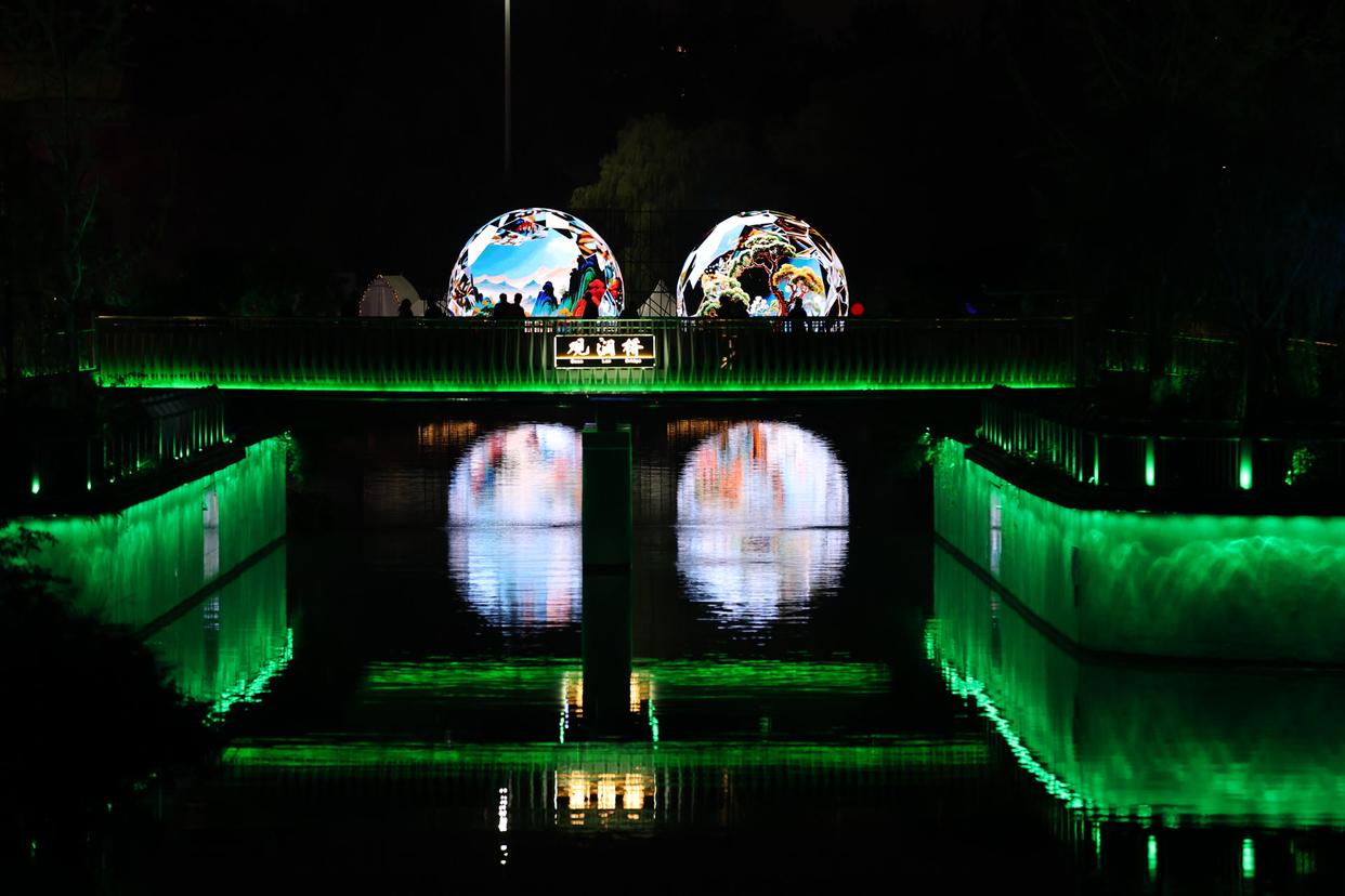 亮马河文化经济带主会场以“盛耀星河”为主题,在亮马河与朝阳公园沿线推出多场重磅首秀首演,包括北京首个水上光影漂浮舞台“魔方”、首个水岸声光社交空间“孤独星球”、首个跨水域空中光影表演“飞跃蓝湖”等。市民游客在公共区域可以免费欣赏到《天鹅湖》《漂浮歌后》等国际水准演出和昆曲等特色演出。