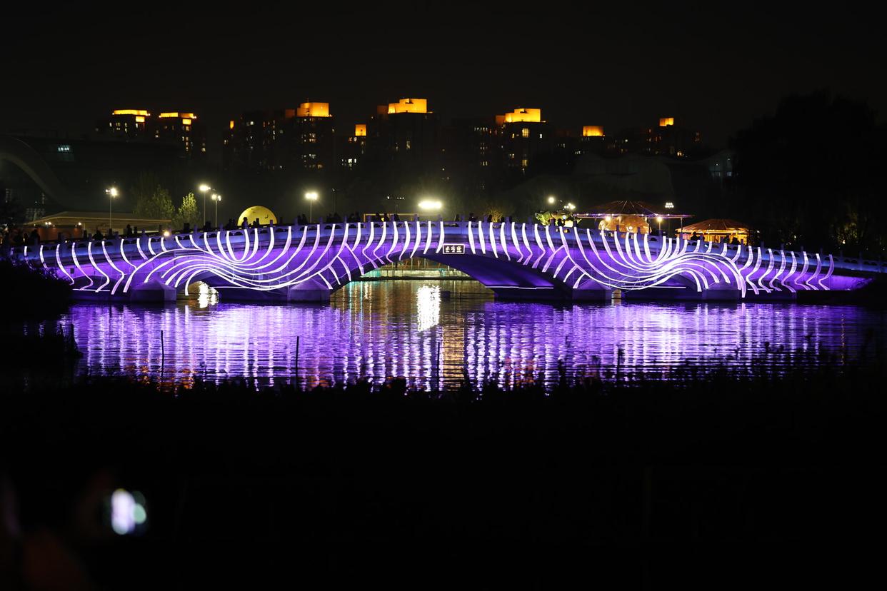 10月11日,2025北京朝阳国际灯光消费季开启。亮马河、奥林匹克公园等地布置了53处光影装置,约500场消费活动将持续至10月底。