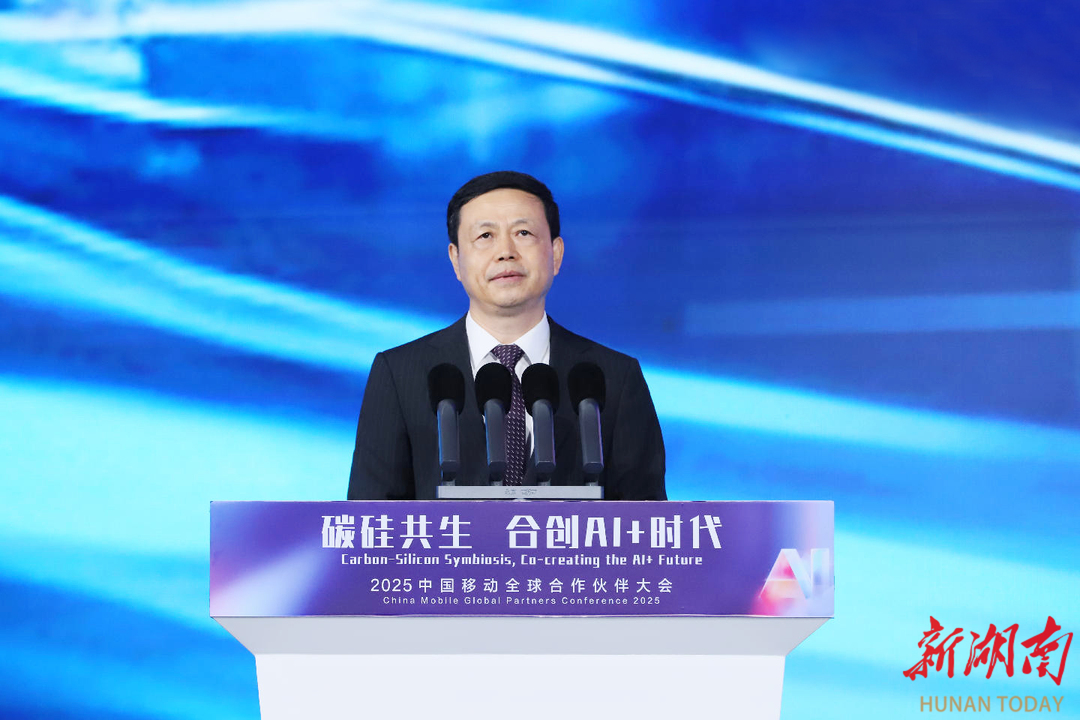 10月10日至12日,2025中国移动全球合作伙伴大会在广州举行。10月11日上午,中国移动董事长杨杰出席大会主论坛,并发表题为《碳硅共生 合创AI+时代》的主旨演讲。
