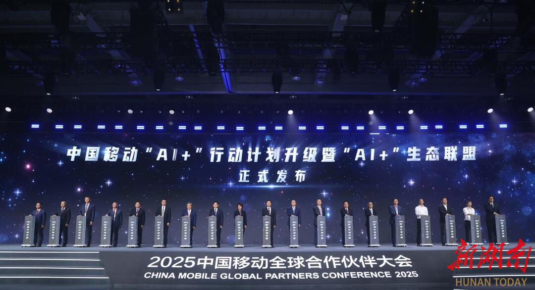 10月11日,在2025中国移动全球合作伙伴大会主论坛上,中国移动正式发布“AI+”行动计划升级暨“AI+”生态联盟。作为央企AI“国家队”,该计划的发布标志着中国移动将全面促进经济社会智能化水平提升,带动形成千亿级市场规模的产业新生态。