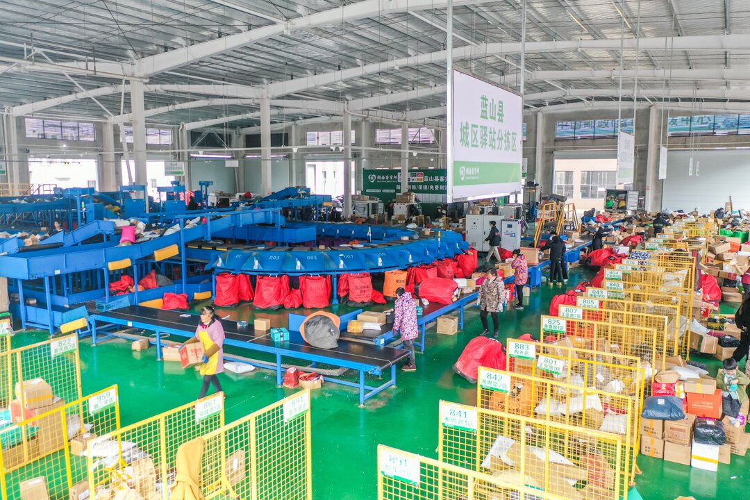 2024年1月30日,蓝山县创品国际智慧物流园,工作人员在智能分拣作业线上忙碌。彭华 摄