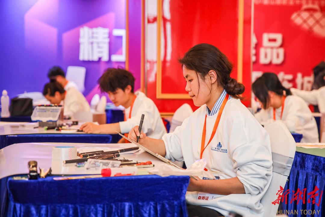 蓝山县举行湖南省皮具设计师职业技能竞赛。彭华 摄