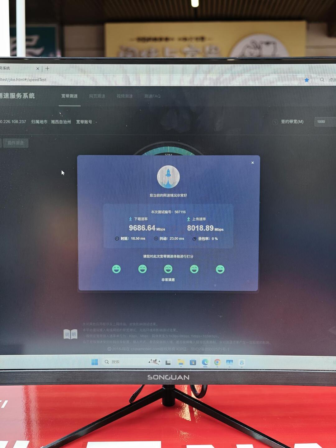衡阳市作为全国首批万兆网络试点城市,湖南移动衡阳分公司在融冠乐城率先部署商用级万兆网络,通过全球领先的“50G PON+FTTR(光纤到房间)”技术架构,实现了端到端万兆接入能力。实测数据显示,该网络下行速率稳定在9400Mbps以上,相比传统千兆宽带,速率整整提升10倍。这一技术不仅能轻松支持多路8K超高清视频、云游戏、3D康养等消费级应用,更能为远程医疗、工业互联网、智慧教育等场景提供毫秒级响应的底层支撑。