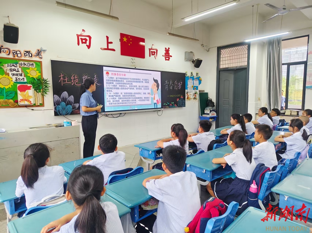 湖南法治报·新湖南客户端讯(通讯员 李杨)“给同学起侮辱性的绰号,是否属于欺凌?”10月13日,衡阳市蒸湘区人民检察院检察官走进衡州小学,以“杜绝欺凌·青春自护——共筑和谐校园”为主题开展法治宣讲,通过案例剖析、互动问答,为师生厘清欺凌边界、普及法律知识,筑牢校园安全防线。