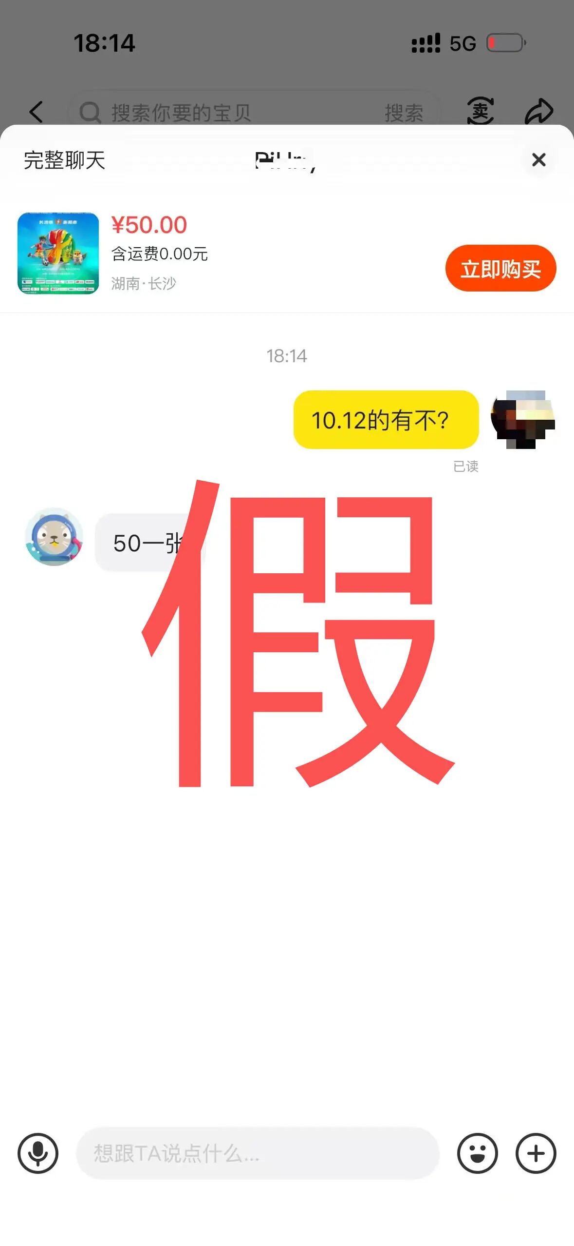 2025年10月9日,“湘超”联赛永州对阵邵阳的比赛门票一经开售迅速告罄。家住麒麟公馆的唐先生因未能成功抢到票,便转向某二手平台尝试购票。其间,一名卖家以“主办方预留票”为由,要求唐某扫码支付50元。然而付款后,页面却显示“出票失败”。