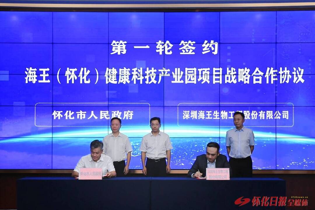 海王生物作为中国医药行业领军企业、中国500 强企业深圳海王集团的核心子公司,是一家覆盖医药产品研发、医药工业制造、医药商业流通、医药零售连锁全产业链的大型综合性企业集团。会上,怀化市人民政府与海王生物签署海王(怀化)健康科技产业园项目战略合作协议,怀化国际陆港经开区与浙江海王数据服务有限公司签署海王(怀化)健康科技产业园项目入园合同。双方约定将充分发挥各自优势,共同建设健康产品生产基地、医疗器械大型现代智能化储存服务平台、维保集约化智能服务中心和配送供应链数字化体系,着力把海王(怀化)健康科技产业园打造成大西南大型医疗用品生产、研发和销售区域中心。这一合作,将为怀化中医药产业高质量发展注入强劲动力,更为怀化构建“5+10”现代产业体系提供有力支撑、作出积极贡献。