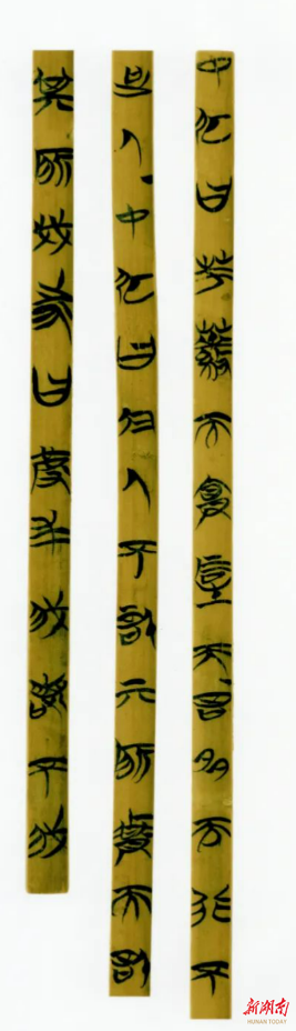 楚系古文的这种书写特点还与工具有关。大家如果去看看长沙左家公山楚墓出土的战国毛笔,或许能得到一些启发。长沙楚笔是用上好的兔箭毛制成的,笔杆为圆竹条,用丝缠绕,外面封漆固定,和现代的毛笔制作工艺有很大不同。这种笔,笔头会有一定程度的空心,为了避免书写过程中出现分叉,只能延长笔毛的长度。所以细长而空心的楚笔,就更适合书写出顿挫分明而富有韵律的线条了。