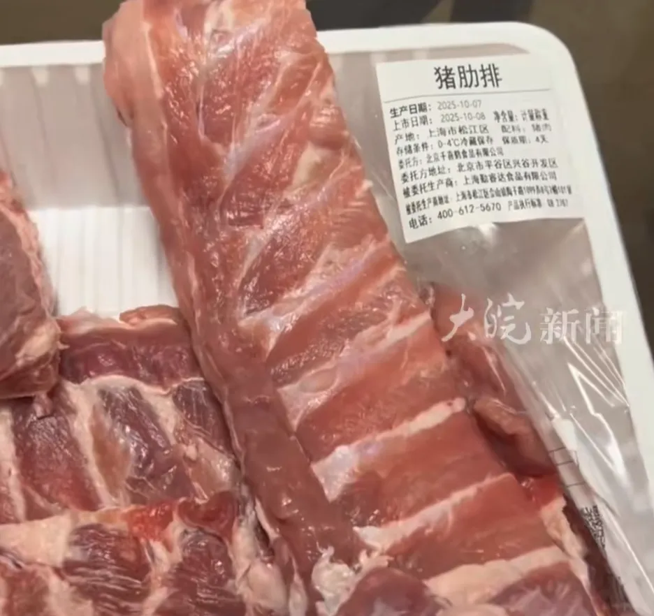 据王先生提供的视频,该盒猪肋排生产日期为10月7日,上市日期为10月8日,王先生在10月9日傍晚购买到了这盒猪肋排。