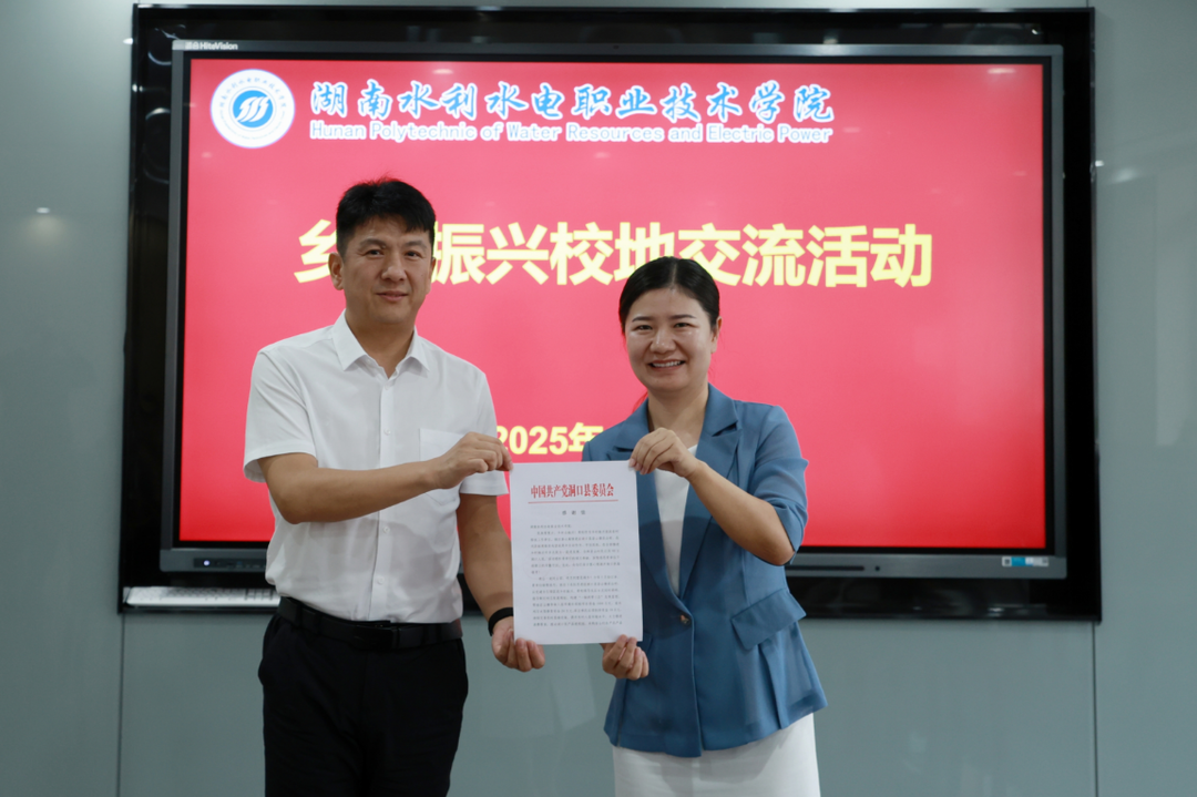 近日,湖南水利水电职业技术学院与洞口县携手举办乡村振兴校地交流活动,共话发展、同绘蓝图。活动围绕“校地合作推进乡村振兴,做好消费帮扶”主题展开深入座谈,双方在资源共享、项目共建、产教融合等方面达成多项共识。洞口县委副书记郭向荣,学校党委书记常世名、副校长黄敏等领导出席。