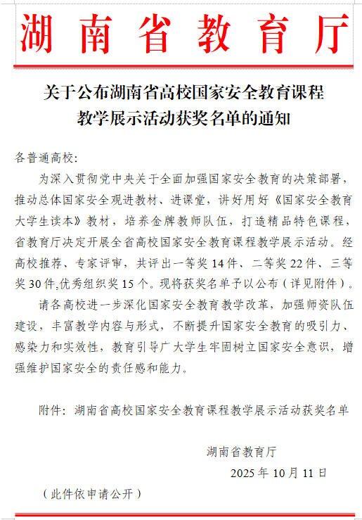 此次获奖不仅是对长沙民政职院教师教学能力的充分肯定,更是长沙民政职院国家安全教育工作成效的集中体现。长沙民政职院将以此为契机,进一步总结推广优秀教学经验,深化国家安全教育课程建设,切实增强大学生的国家安全意识与责任担当,为培养担当民族复兴大任的时代新人奠定坚实基础。