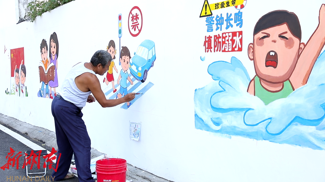 墙绘内容丰富且主题鲜明,既有“珍爱生命,拒绝毒品”的醒目警示,也有“预防溺水”“文明出行、交通安全”的温情提醒,同时,描绘邻里和谐的“和美社区”场景也生动鲜活,为社区注入了浓郁的文化气息,吸引不少路过居民驻足观看。