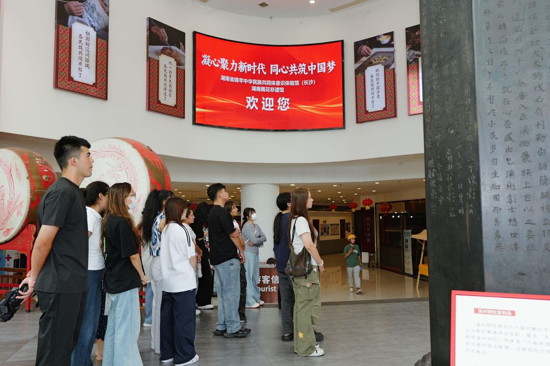 近日,长沙民政职院组织在校25名少数民族学生代表走进湖南省铸牢中华民族共同体意识体验馆,展开一场沉浸式的研学实践,在非遗传承中深植民族团结的种子。