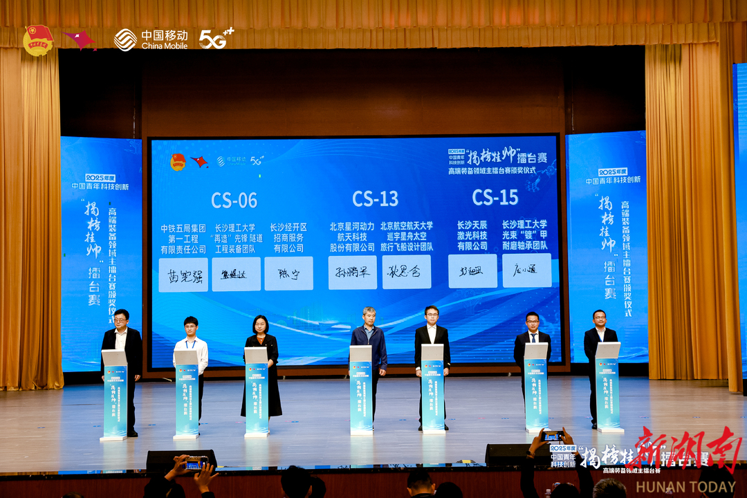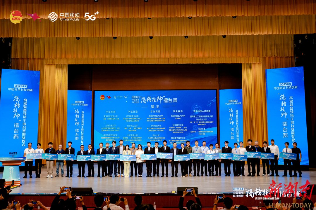 秋日星城,创新潮涌。10月14日,长沙县委党校亲民楼内掌声雷动,2025年度中国青年科技创新“揭榜挂帅”擂台赛高端装备领域主擂台赛在此圆满收官。来自全国121所高校的302支顶尖团队、近千名科创青年历经激烈角逐,最终17支团队成功“挂帅”,在“工程机械之都”擂响技术攻坚战鼓。