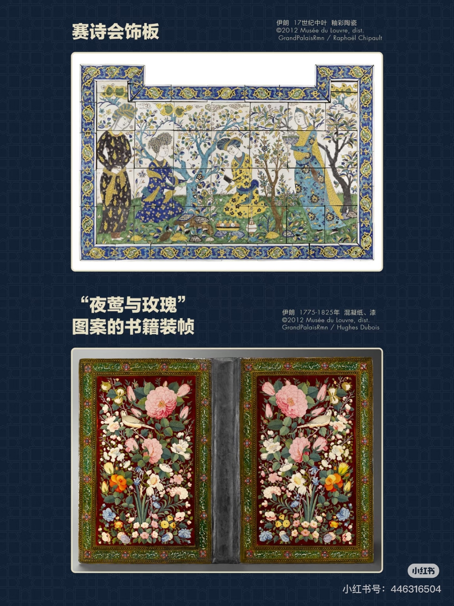 目前,浦东美术馆已经提前“剧透”部分重点展品,比如,器物方面,16世纪中叶时来自土耳其的玉杯、镌有萨法维王朝阿巴斯大帝名号的笔盒、17世纪印度的匕首、17世纪印度北部的窗屏等。布面油画则以19世纪初伊朗的《法特赫-阿里·沙阿·卡扎尔》肖像为亮点,更有“夜莺与玫瑰”图案的书籍装帧等展品亮相。