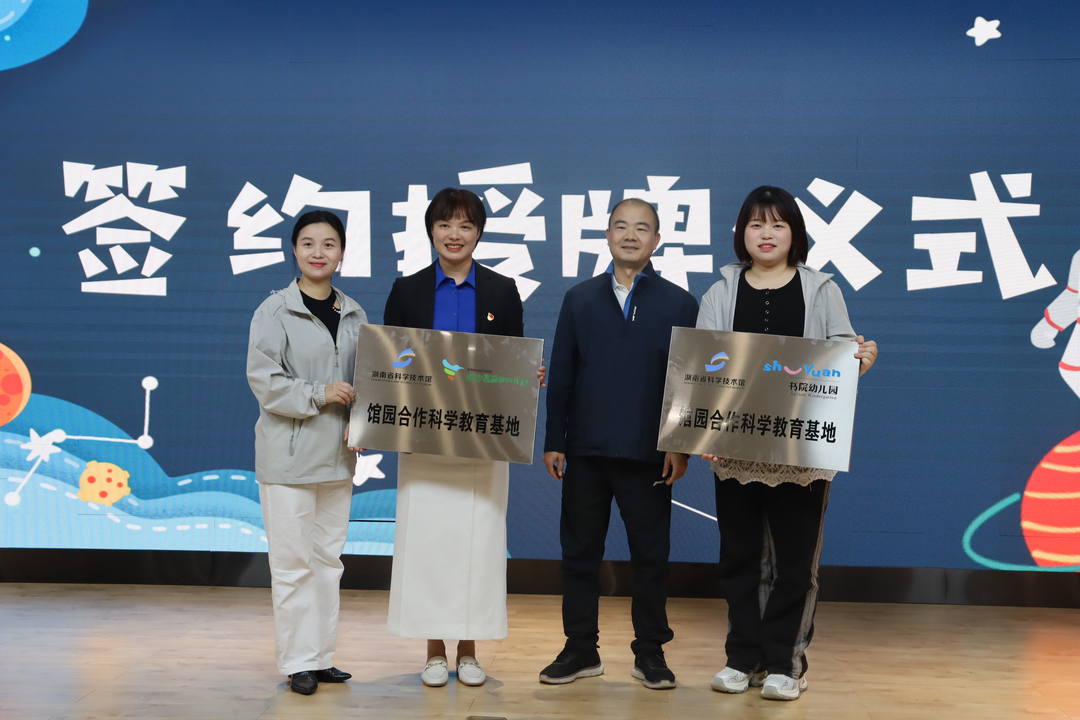 10月14日,湖南省科学技术馆与长沙市天心区白沙翡丽郡幼儿园&书院幼儿园合作共建“科学启蒙教育基地”签约授牌仪式在翡丽郡幼儿园举行。