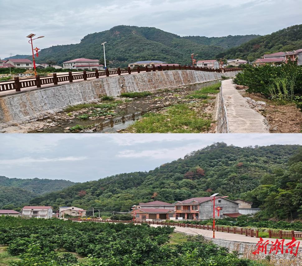新建溪沟护坎、滚水坝、机耕桥、产业道路