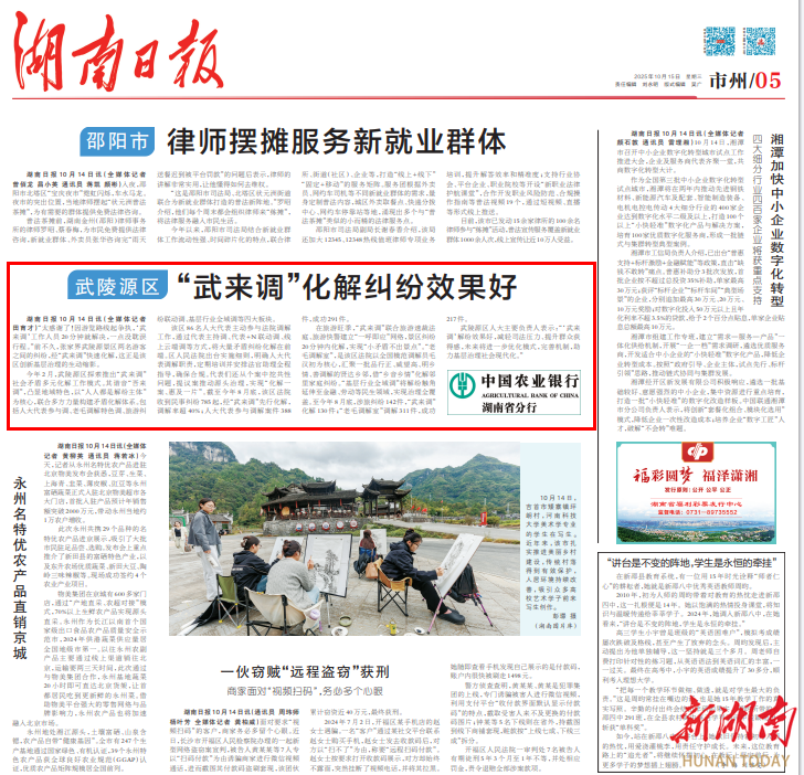 在旅游旺季,“武来调”联合旅游速裁法庭、旅游快警建立“一呼即应”网络,景区纠纷20分钟内化解,实现“小矛盾不出景点”。“老毛调解室”,是该区法院以全国模范调解员毛汉初为核心,汇聚一批品行正、威望高、明乡情、善调解的贤达乡邻,借“乡音乡情”化解邻里家庭纠纷。“基层行业全域调”将解纷触角延伸至金融、劳动等民生领域,实现治理全覆盖。至今年8月底,涉旅纠纷142件,“武来调”化解130件;“老毛调解室”调解311件,成功217件。