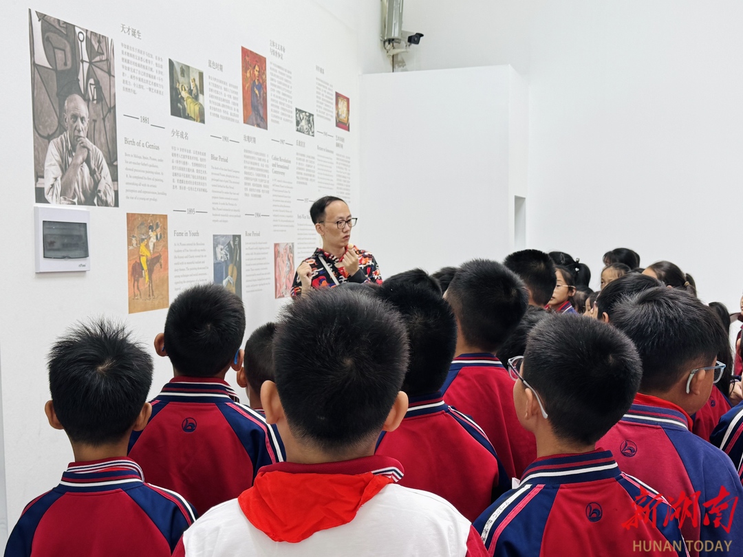 湖南日报·新湖南客户端10月15日讯(记者 卢嘉俊)“相较于以前看过的画,这次在画展上看到的比较新奇,色彩也更加鲜艳。”10月15日,一堂别开生面的课外美育课程在怀化市博物馆(旧馆)进行。展厅内,怀化市刘霖学校四年级(2)班蒋瑜同学参观展览后说道。