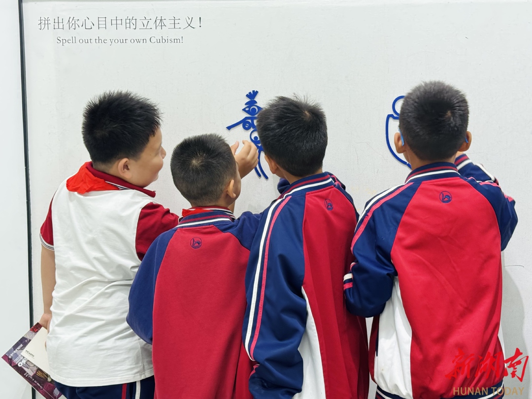 在博物馆特设的互动区,学生们响应“人人都是毕加索”的号召,亲手体验立体主义创作。孩子们在天马行空的涂鸦中释放想象力,既加强了学生对美术鉴赏的学习,又让美育成为了促进学生全面发展的重要途径。