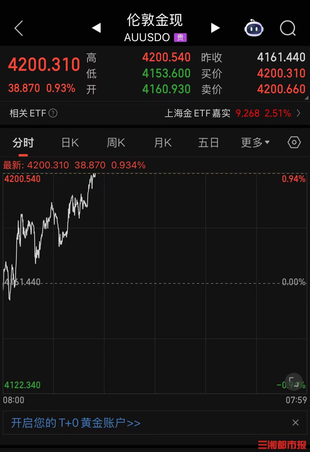 三湘都市报·新湖南客户端10月15日讯(全媒体记者 仝若楠)10月15日,现货黄金持续走强,史上首次突破4200美元/盎司关口,截至发稿,最高报4200.54美元/盎司,日内涨幅近1.4%。