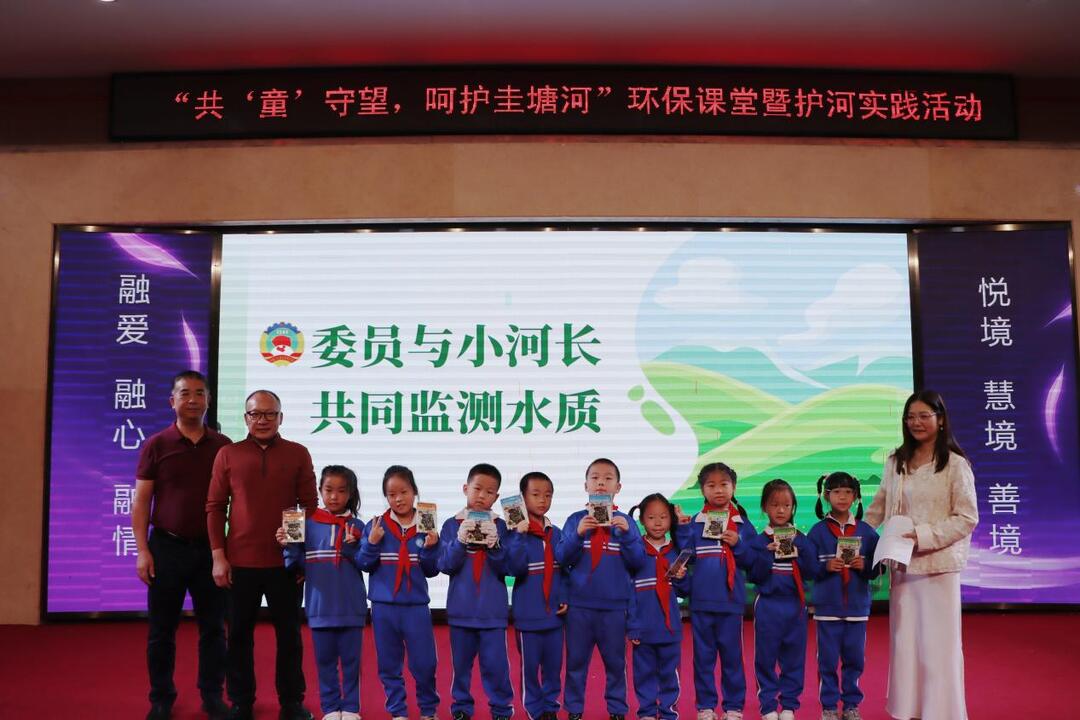 “我是圭塘河‘小河长’,今天,我郑重承诺:爱护小河,像爱护我的眼睛一样,做小河守卫者,捍卫它的清澈。”长沙市雨花区万境小学二楼报告厅传出孩子们洪亮的承诺声。