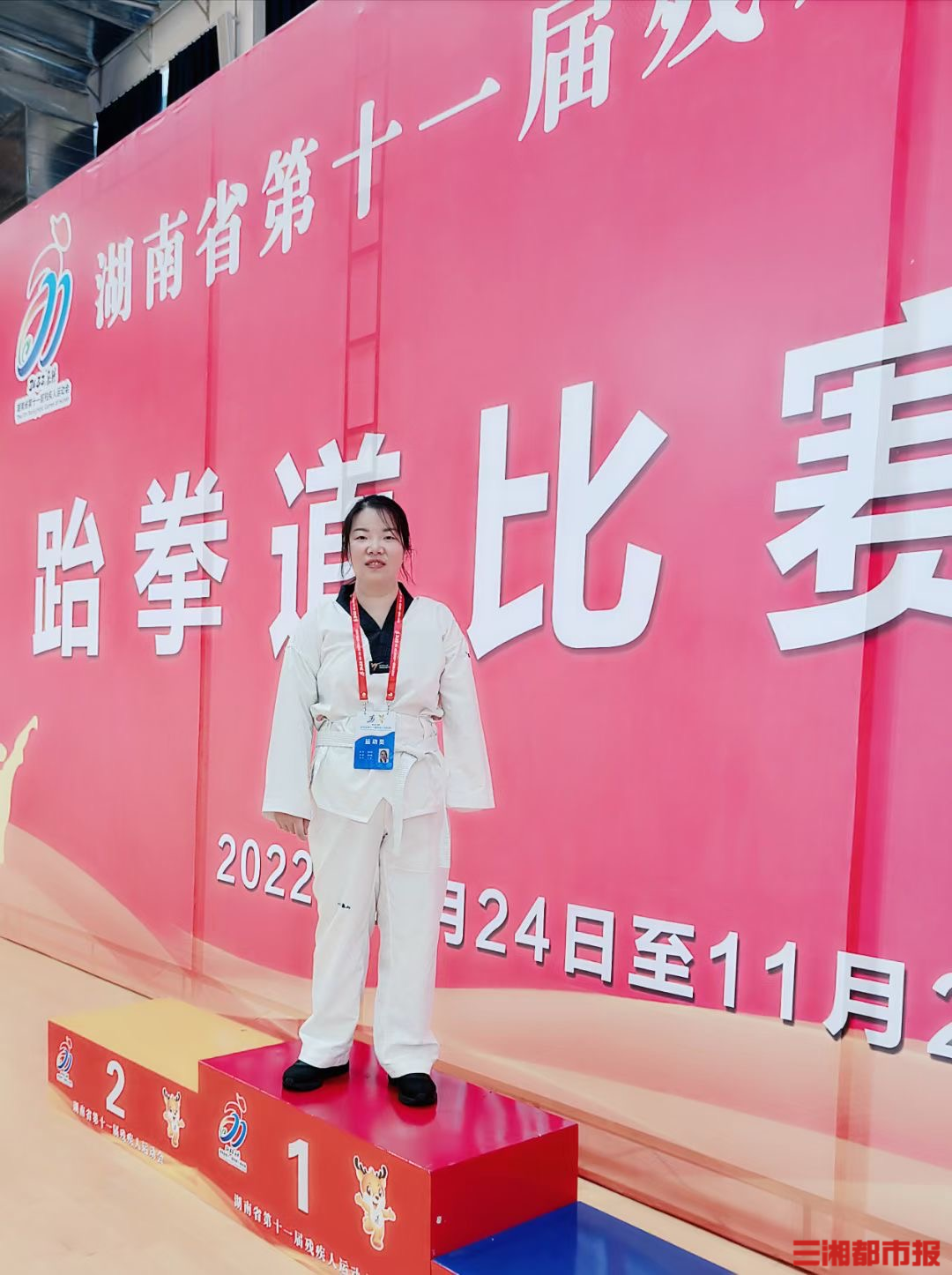 残运赛场上,杨凯崎同样光芒四射。2019年,她带伤参加全国第十届残运会,获得跆拳道女子58公斤级第五名;2022年,在湖南省第十一届残运会女子跆拳道58公斤级比赛中斩获金牌。