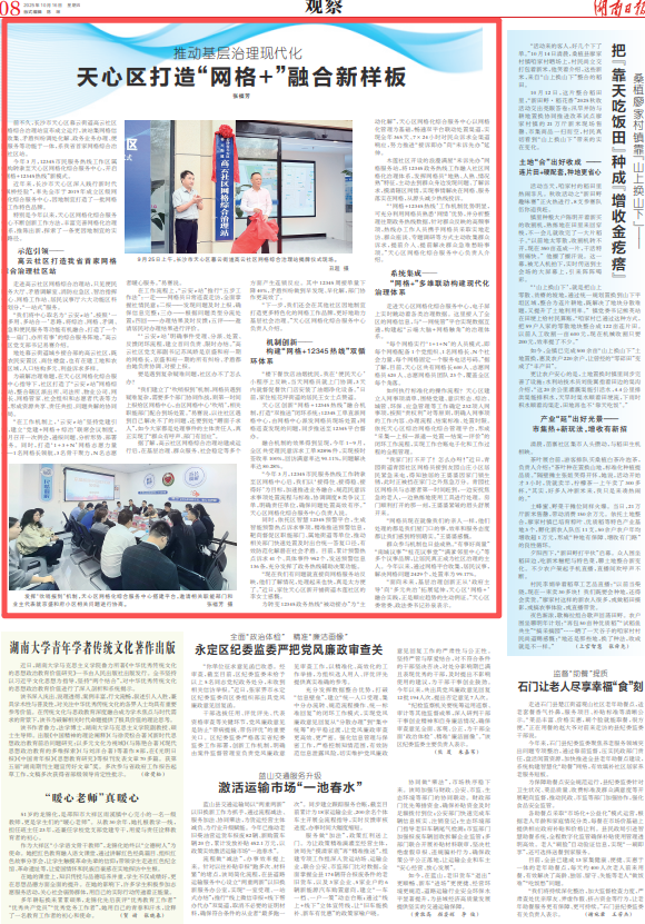 特别是今年以来,天心区网格化综合服务中心不断创新工作方法,丰富完善网格化治理体系,推陈出新,探索了一条更因地制宜的实践路径。