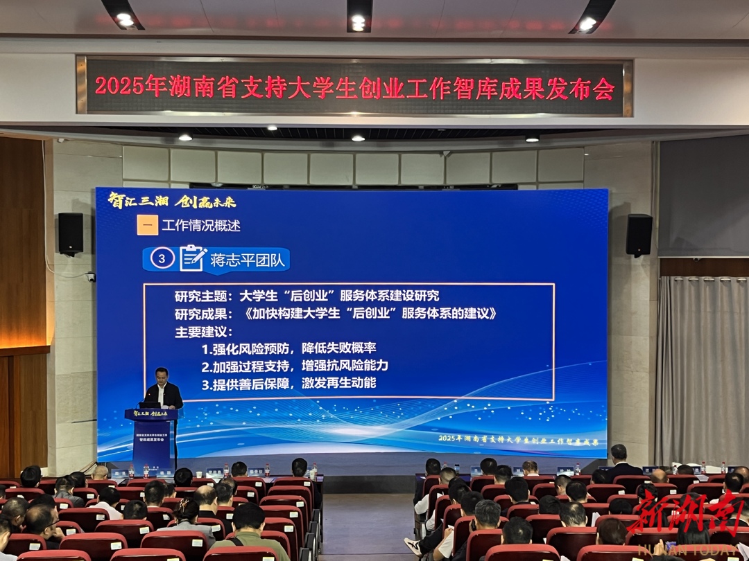 湖南日报10月16日讯(全媒体记者 余蓉 见习记者 沈可心)大学生创业被称作“九死一生甚至九十九死一生”的事业。过去,社会更多关注成功者,而大量创业失败的大学生往往成为“沉默的少数”。今日,在2025年湖南省支持大学生创业工作智库成果发布会上,省教育科学研究院党委委员、副院长王荣发布了8项由该院负责的研究报告,其中包括由省教科院发展所副所长蒋志平团队编写的《加快构建大学生“后创业”服务体系的建议》。该报告首次系统提出“后创业”服务理念,探索为创业受挫者构建全链条保障机制,旨在引导社会更加理性看待创业挫折,让“失败”不必然成为创业历程的终点。