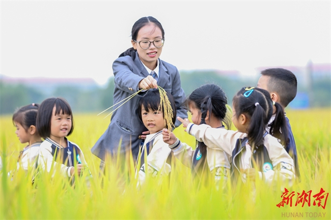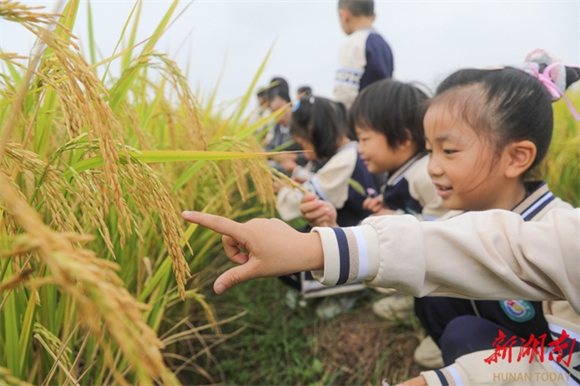 The photo, taken on October 14, shows kids from a kindergarten in Hengyang County observing paddy rice in the field. The World Food Day falls on October 16 annually. On the occasion of this day, the kindergarten launched an educational event themed "Do my part to cherish food". In this event, kids were taught knowledge of food and how to identify different kinds of food, and observed paddy rice up close in the field. The event aimed to cultivate the kids' awareness of cherishing food from their childhood. (Photo/Liu Xinrong)
