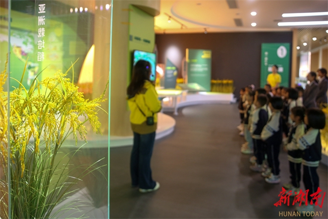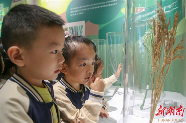 The photo, taken on October 14, shows kids visiting a local rice museum. The World Food Day falls on October 16 annually. On the occasion of this day, the kindergarten launched an educational event themed "Do my part to cherish food." In this event, kids were taught knowledge of food and how to identify different kinds of food, and observed paddy rice up close in the field. The event aimed to cultivate the kids' awareness of cherishing food from their childhood. (Photo/Liu Xinrong)