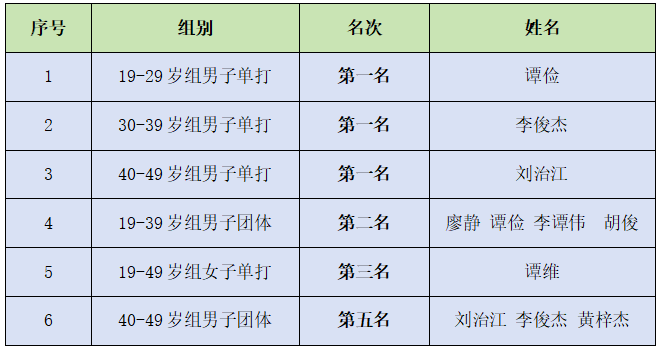 赛事报名18分钟,参赛名额一抢而空。株洲队参赛8人,最终获得3金1银1铜,包揽男子三个组别单打冠军的极佳战绩,在全国乒坛,展现了株洲力量。