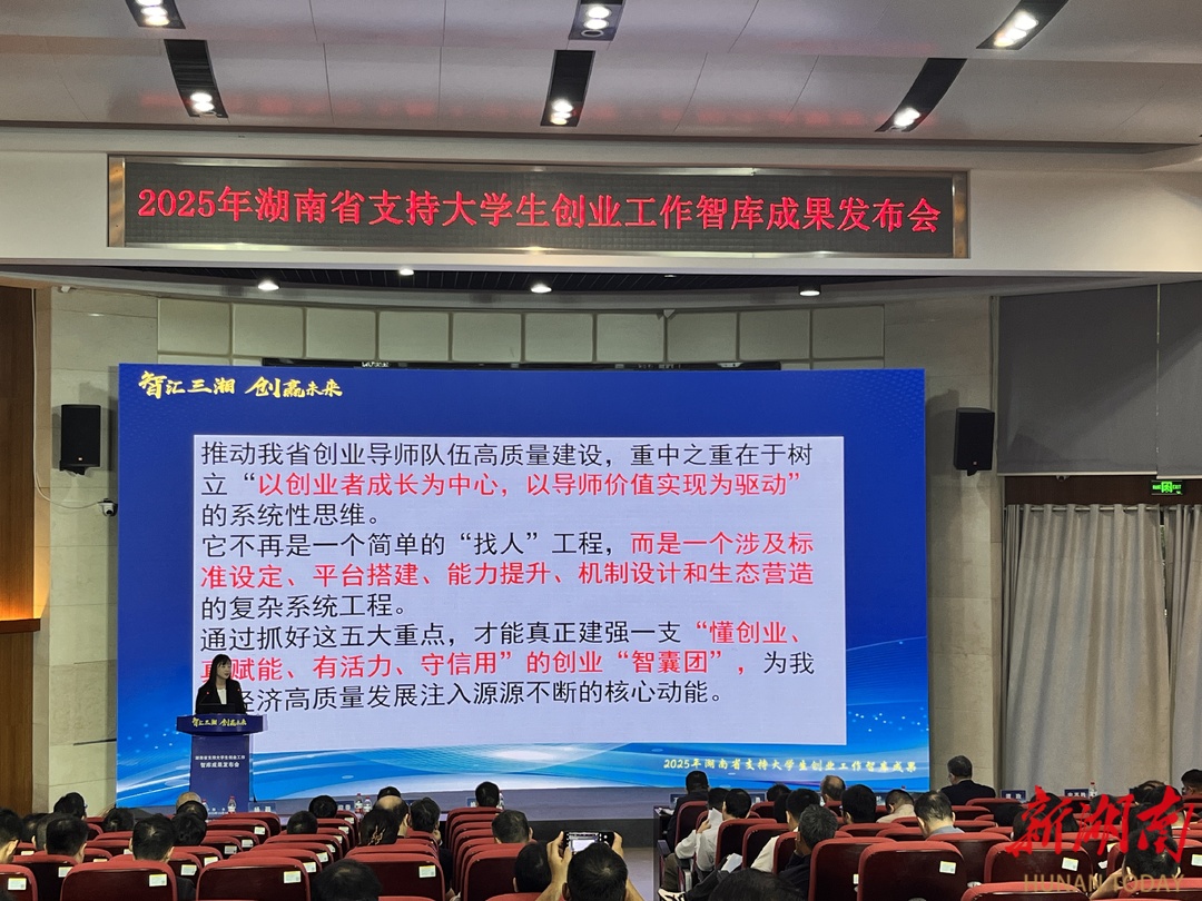 湖南日报10月16日讯(全媒体记者 余蓉 见习记者 沈可心)“创业导师服务如何科学评价?创业指导资源如何精准匹配?”今日,在2025年湖南省支持大学生创业工作智库成果发布会上,由省生产力促进中心主任张媛团队发布的《建强创业“智囊团”:推动我省创业导师队伍高质量建设的对策与思考》研究报告,首次提出“创新创业导师效能指数”(EIEM指数),并构建相应量化评价模型,旨在为评估导师服务效能提供新的参考思路,推动创业导师管理向更加精细化的方向发展。