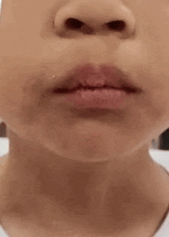 下面这个视频就是典型的异常吞咽,可以看到吞咽的时候整个嘴唇周围的肌肉都在用力帮助。