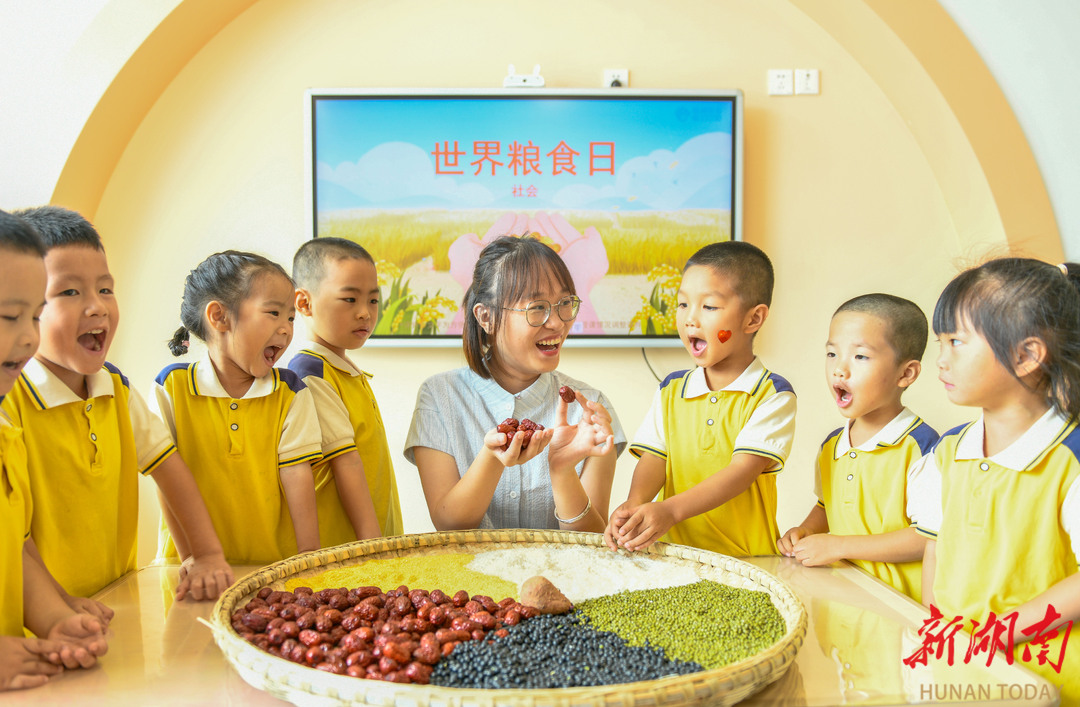 科教新报·新湖南客户端讯(通讯员 蒋克青)10月16日,道县幼儿园开展“爱粮惜粮 从小做起”主题活动。老师带着孩子们通过识水稻、识五谷杂粮、做糍粑等活动,培养孩子们爱惜和节约粮食的意识,迎接世界粮食日的到来。