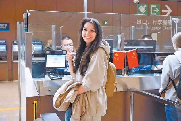 (俄罗斯旅客叶卡捷琳娜从北京大兴国际机场口岸顺利入境,为高效通关点赞。)