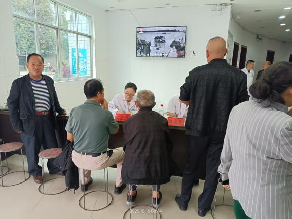 活动当天,诊疗区域早早划分明确,疾病诊疗、慢病管理、妇幼保健、公共卫生指导等服务窗口依次排开,医护人员提前到位调试设备,退休党支部的老党员们协助引导群众登记、分流,确保诊疗流程高效有序。