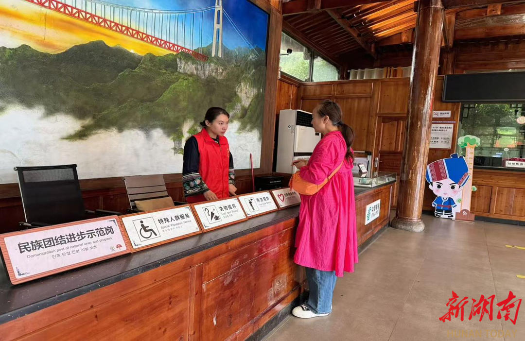 景区建设中融入多民族元素,打造沉浸式体验。游客服务中心采用苗族、土家族建筑风格,餐饮区汇聚各族美食,民宿融合苗族吊脚楼、土家族转角楼特色,打造“处处有文化、步步见交融”的沉浸式体验。