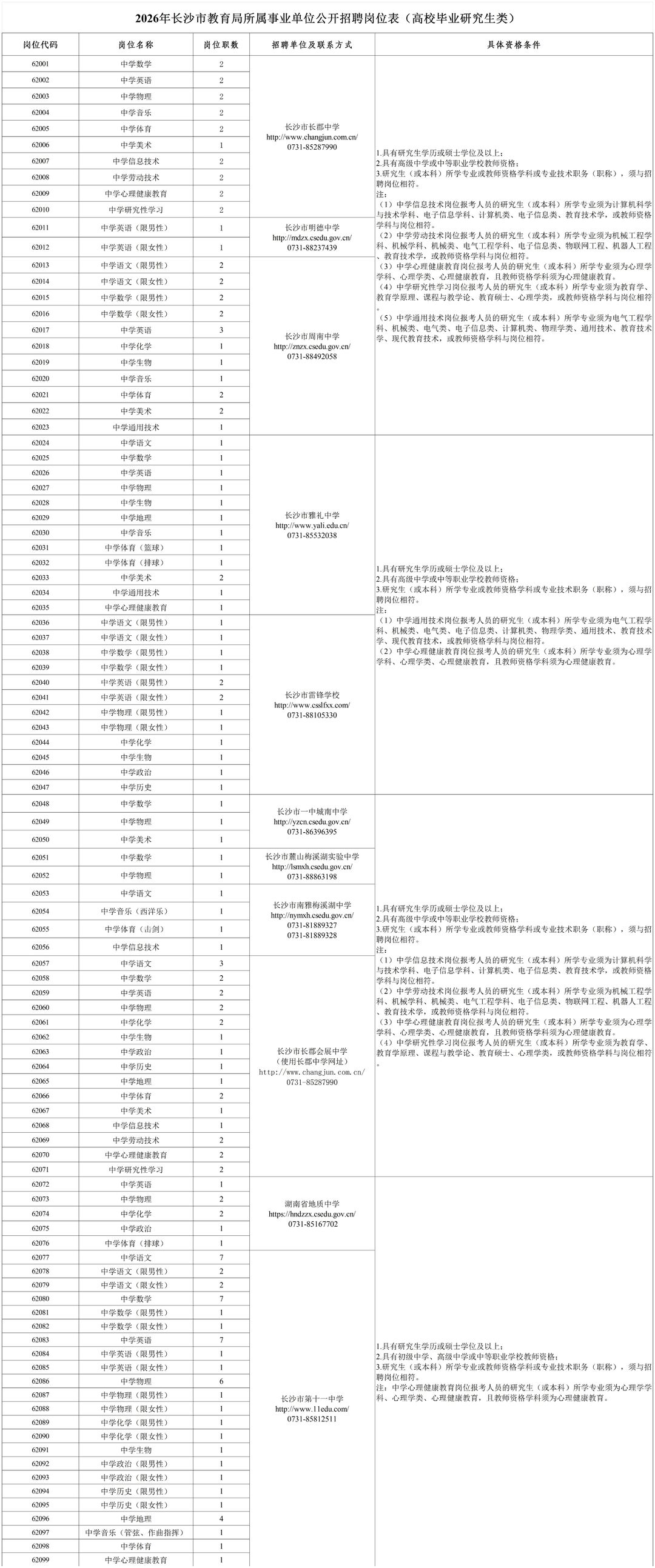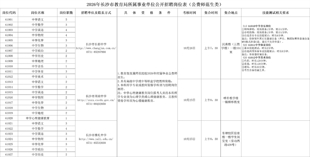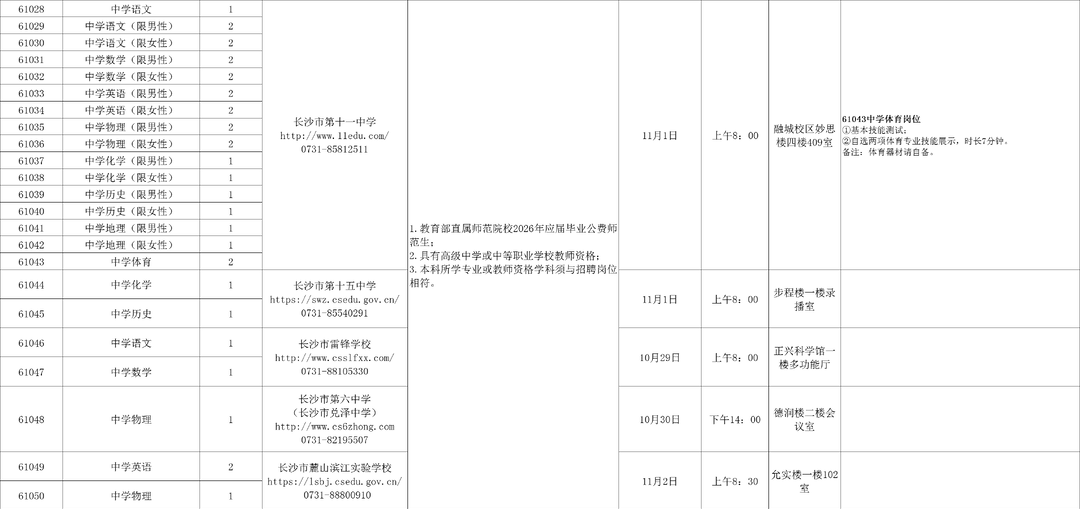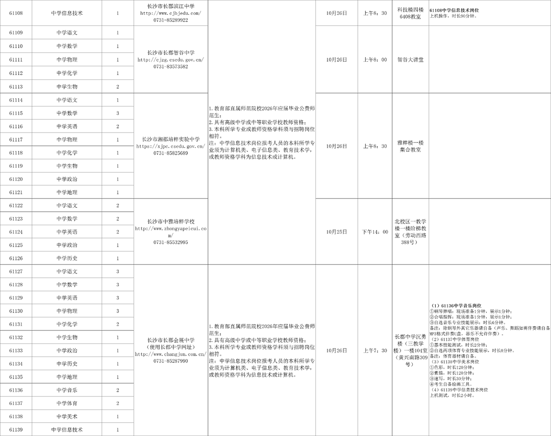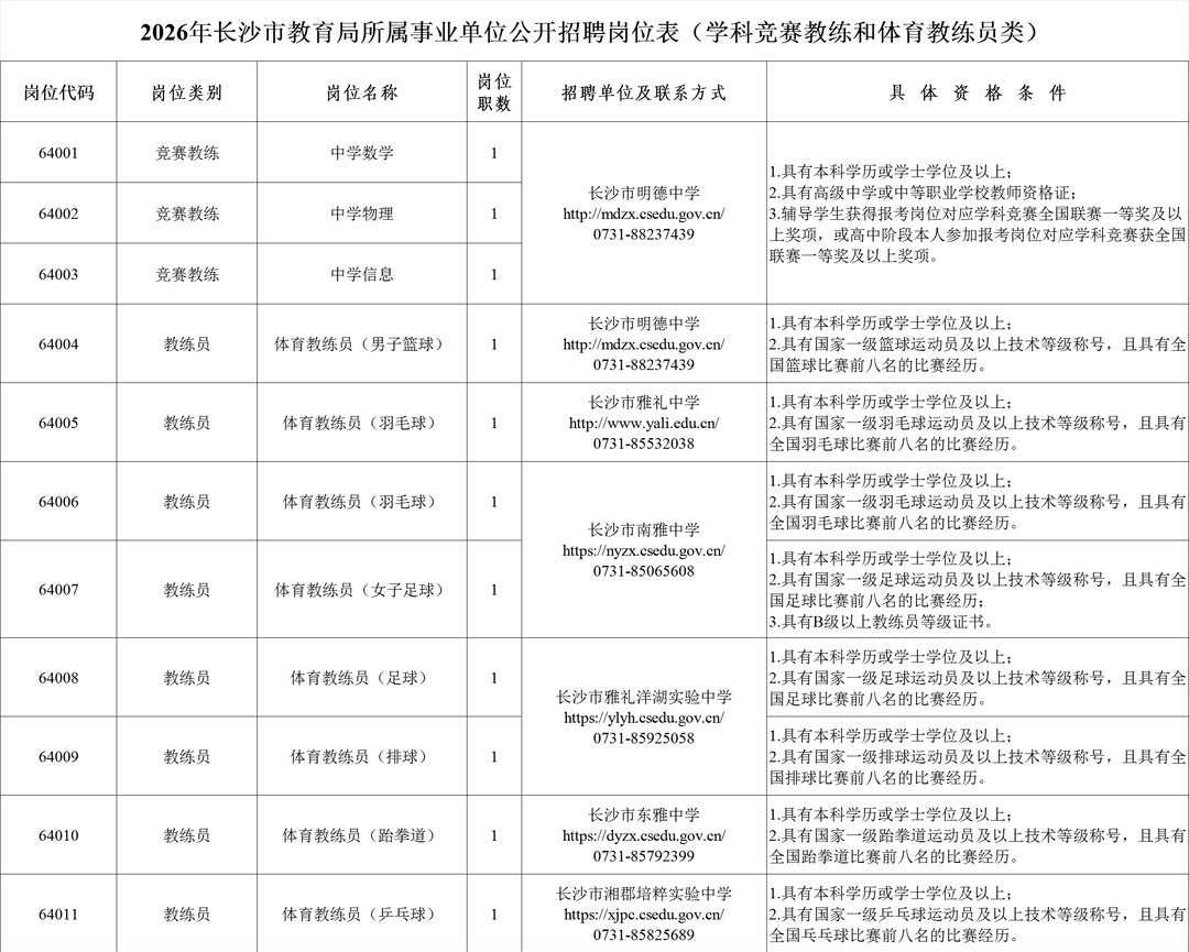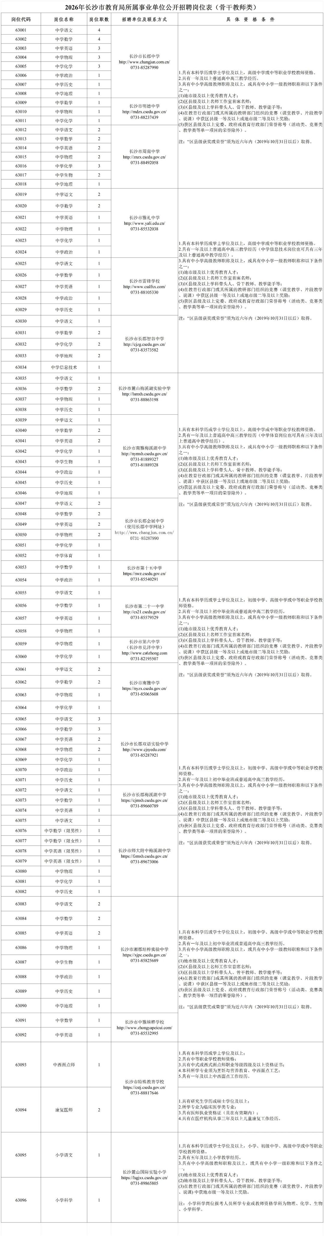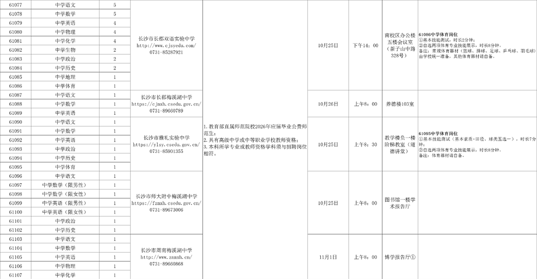 报名及笔试相关操作(缴费、查分、确认考核岗位等)均通过长沙市人事考试服务网进行,招聘公告、拟录取名单等信息将通过长沙市人力资源和社会保障局官网、长沙市教育局官网发布,各岗位考核安排、成绩排名等细节可查询对应招聘学校官网(详见岗位表附件)。