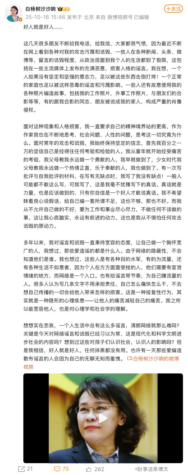 近日,中国残联原主席张海迪在微博发长文,公开回应近期网络上对其攻击、污蔑和造谣行为。