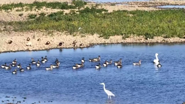衡山萱洲国家湿地公园监测显示,成群斑嘴鸭在此安家;波光粼粼的水面到处伫立身姿修长的鹭鸟,它们或选择在此越冬,或补充体力后继续南迁。