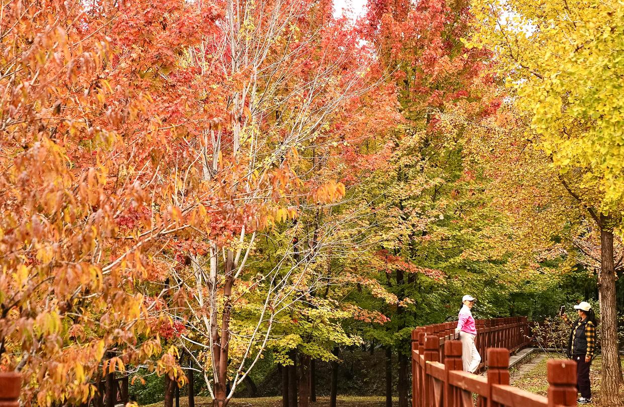 秋风轻拂燕山余脉,将北宫国家森林公园渲染成一幅流动的油画。随着首片元宝枫翩然飘落,整座公园渐被秋色浸染。