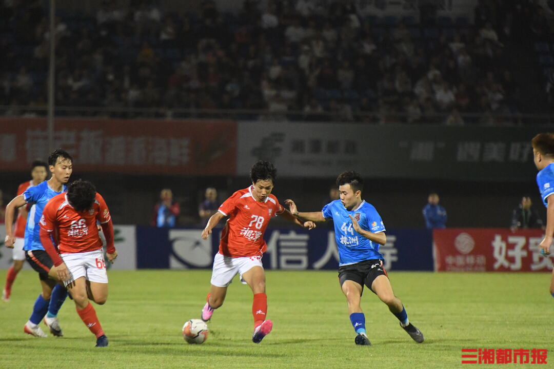 三湘都市报·新湖南客户端10月17日讯(全媒体记者 叶竹 吴忠强 图/通讯员 陈旭东 王志伟 )在积分榜“榜二大哥”株洲队面前,排名倒数第一的湘潭队没有犯怵,不仅率先破门,还拿到队伍在湘超联赛开赛以来的第一分。10月17日晚,“湘超”联赛第六轮进行了首场比赛,湘潭队在湘潭市体育中心迎战株洲队,依靠何钊阳的进球取得领先,虽然最后被株洲队扳平比分,但1比1的结果也让湘潭队结束了开赛以来的五连败。