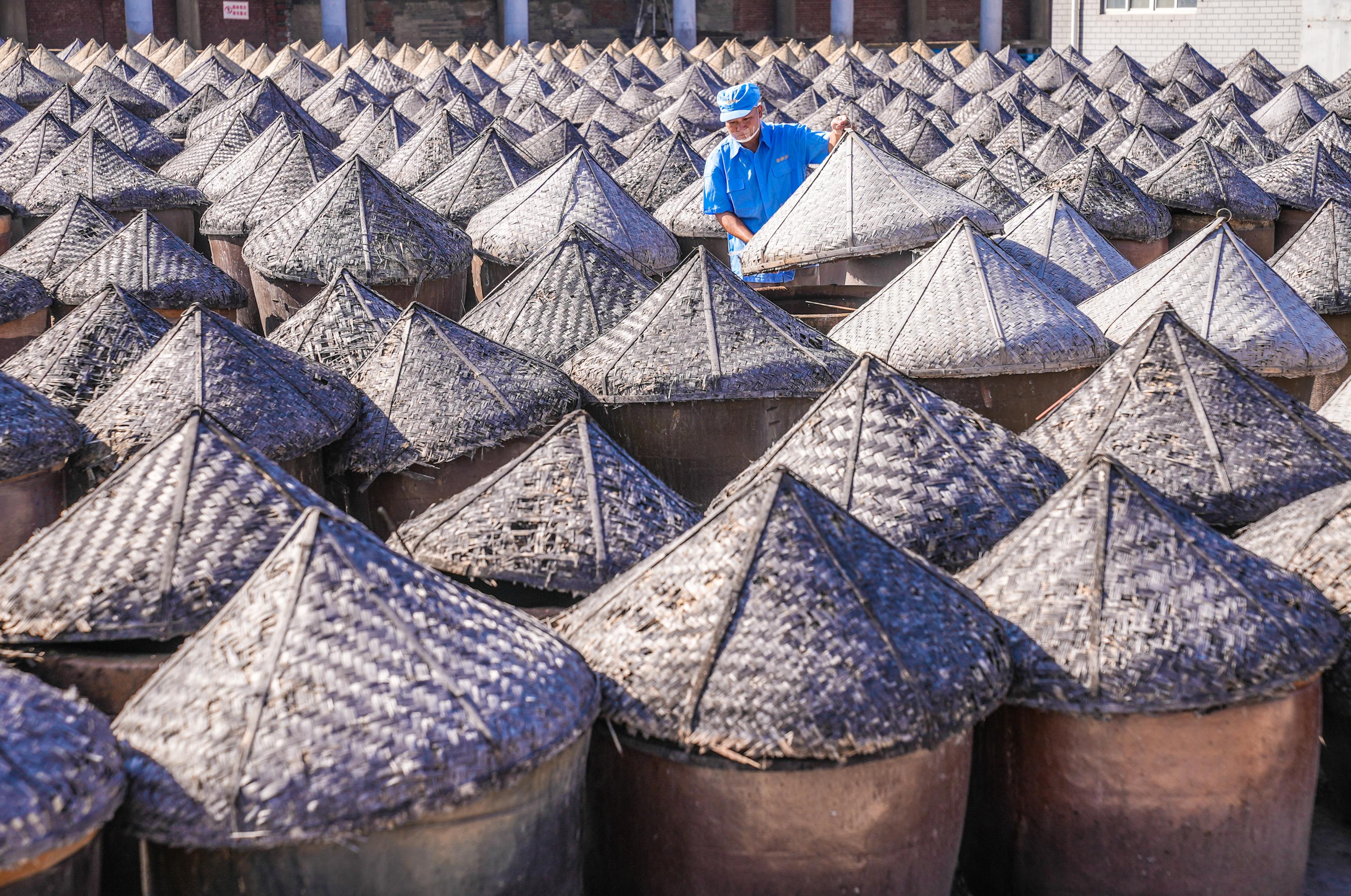 六必居酱园内,工作人员在查看酱油酿造情况。始自明正统元年(1436年)的六必居,至今已走过近600年历程。