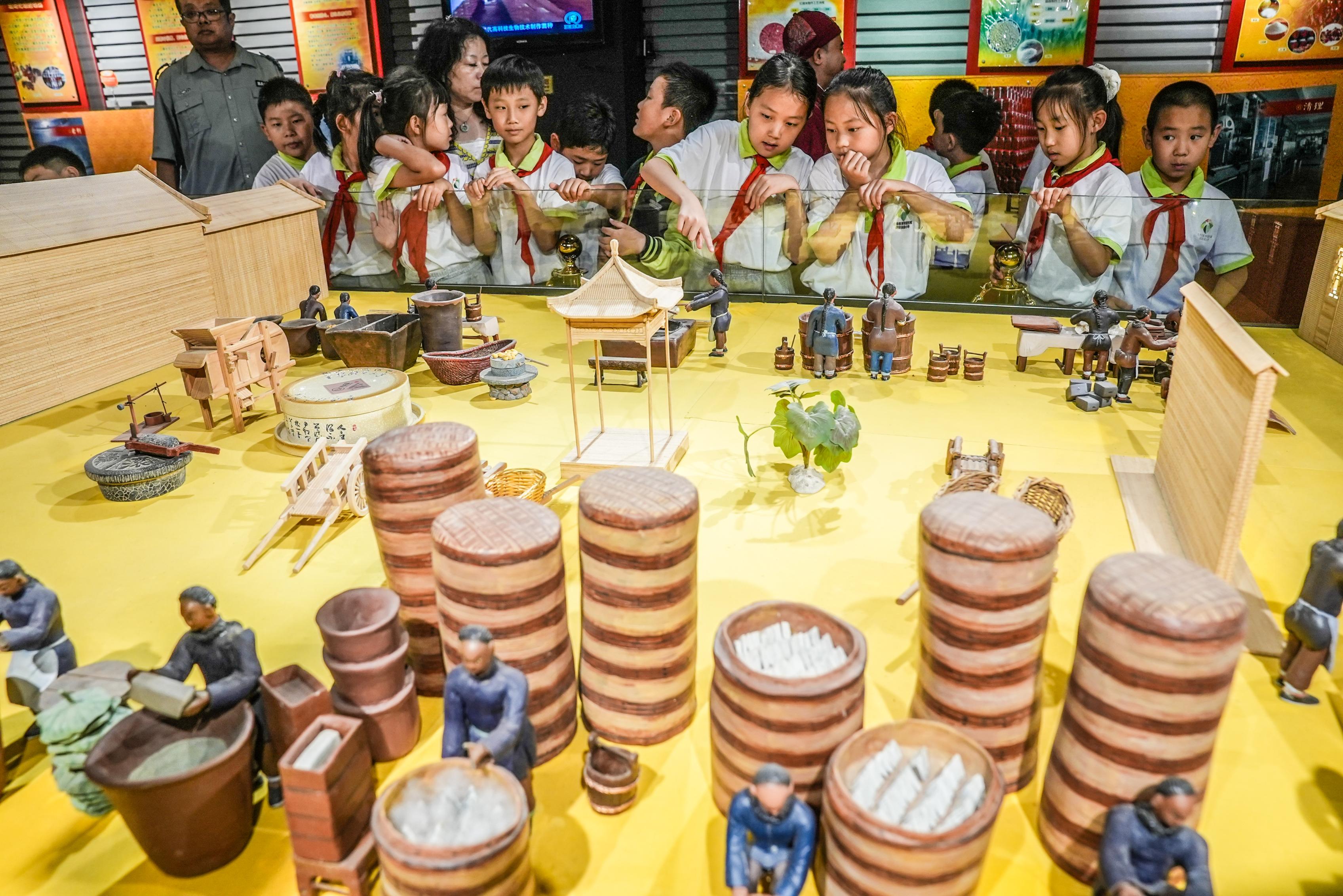 图为孩子们走进王致和腐乳科普展馆,了解腐乳背后的故事,体验传统文化与现代创新的结合。