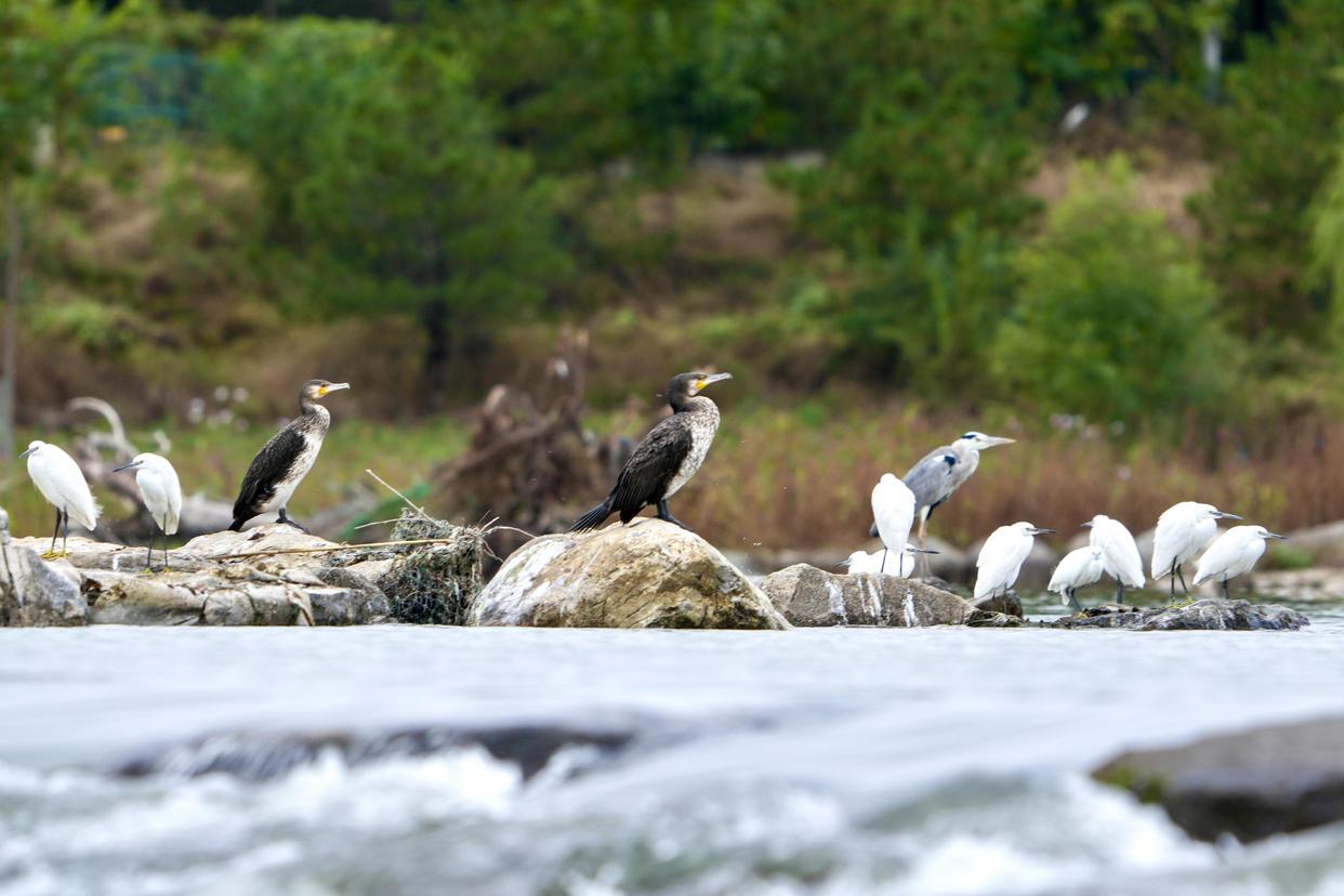 10月17日,市民在北京石景山的永定河畔惊奇发现,在湖水的中央,10余只白鹭、苍鹭、鸬鹚在水中嬉戏。据介绍,近年在永定河石景山段发现鸟中“大熊猫”震旦鸦雀稳定种群,文须雀,冠鱼狗,普通翠鸟等深受摄影爱好者喜爱的鸟种频繁现身。今年石景山区园林绿化局在监测中记录到国家二级重点保护野生动物斑头秋沙鸭,靴隼雕,进一步证明了石景山区永定河周边生态环境的优质提升,通过鸟类生存的改善,展开了生态和谐的时代新篇章。