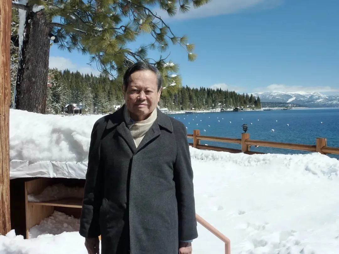 那时太浩湖区已经连续下了一周的大雪,我说去太浩湖太危险了,可杨先生坚持要去。那天,杨先生开完会已是下午4点,我们租了一辆车,从伯克利出发前往太浩湖。一两个小时后,我们开始进入山区,雪又下了起来,越下越大。天也开始黑了,山里的路已经积了一周的厚厚的冰雪,而我,从没在大雪中开过车!杨先生提醒我:不要急转弯,不要紧刹车。我谨记这两点,在大雪中匀速前进,紧握着方向盘的手都握出汗来。更要命的是,我们租的车不是四轮驱动,而是一辆最最普通的小型轿车。我们怕湖区可能因下雪封路,就打开收音机收听路况,可是汽车无线电功能太差,或者是天气恶劣的缘故,声音极不清晰,只断断续续听到重复着的“Highway×××...dangerous”(×××公路……危险)。