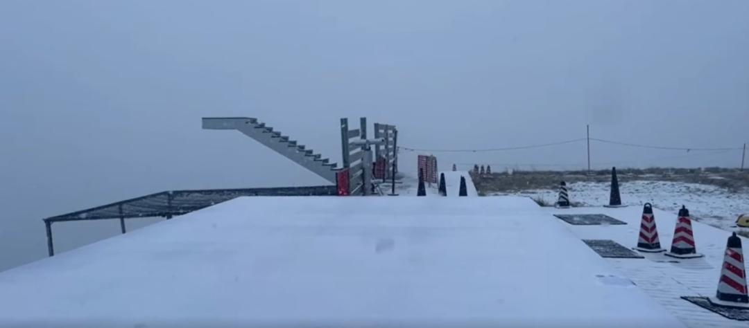 18日傍晚,延庆区局部地区也出现了降雪。延庆奥林匹克园区雪花纷纷扬扬,缆车视角可感受雪落之美。